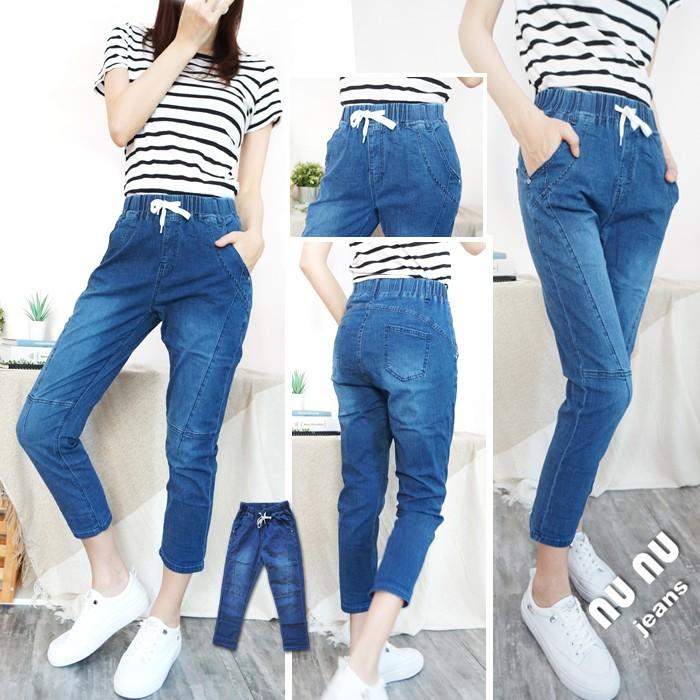 顯瘦車線七分褲 高腰抽繩鬆緊哈倫褲 七分牛仔褲 七分褲 牛仔七分褲 工作褲 八分褲 休閒褲 夏天褲子女.883.535