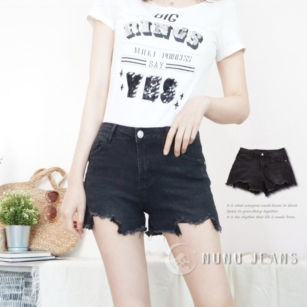 低腰個性彈力抓破黑灰牛仔短褲 熱褲 短褲 休閒短褲 辣妹風 性感 低腰短褲 黑色牛仔短褲 黑色短褲 褲子.787.131
