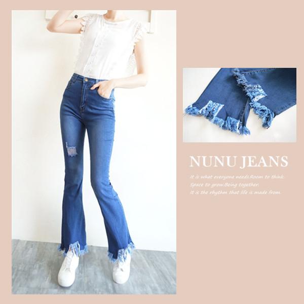 韓妞款💖高腰流蘇喇叭褲/氣質顯瘦牛仔褲/小喇叭褲/喇叭褲/喇叭牛仔褲/牛仔長褲/刷破牛仔褲/女生長褲NN.136.076
