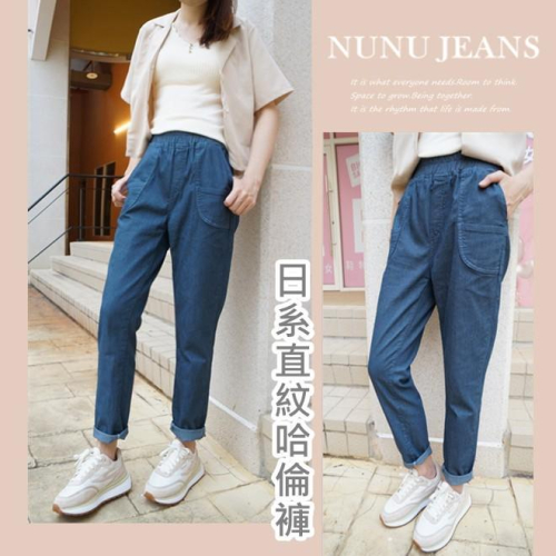 日系 顯瘦深藍直紋 哈倫褲 老爺褲 男友褲 寬鬆長褲 直筒褲 長褲女 休閒長褲 NN.976.077