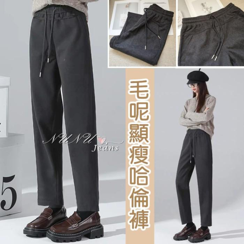 日系斜紋毛呢直筒褲 休閒長褲 老爺褲 哈倫褲 休閒褲 冬天褲子 女長褲 保暖褲 保暖長褲.367.132