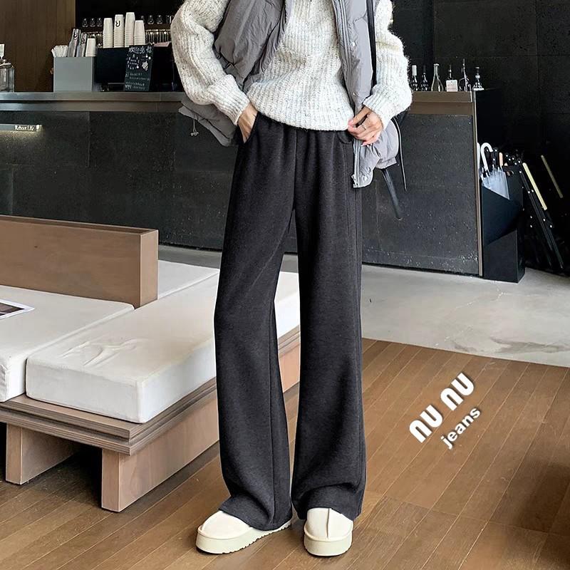 高腰 寬褲 羊絨闊腿褲 糯米褲 女裝 落地褲 棉褲 直筒褲 休閒褲 休閒長褲 女裝 長褲女 女生長褲 韓國 保暖褲