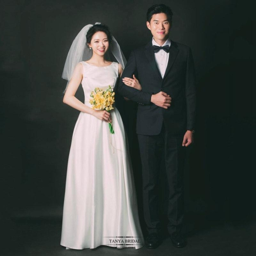 旗艦店緞面輕婚紗2023新款韓式新娘一字肩白色簡約齊地森系婚禮旅拍春季