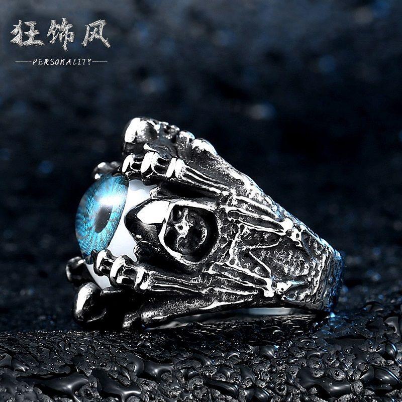 狂飾風 霸氣個性惡魔之眼戒指男潮復古骷髏指環鈦鋼立體浮雕設計