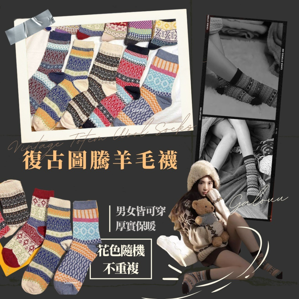 🧦 Galouu 復古圖騰羊毛襪 🍂