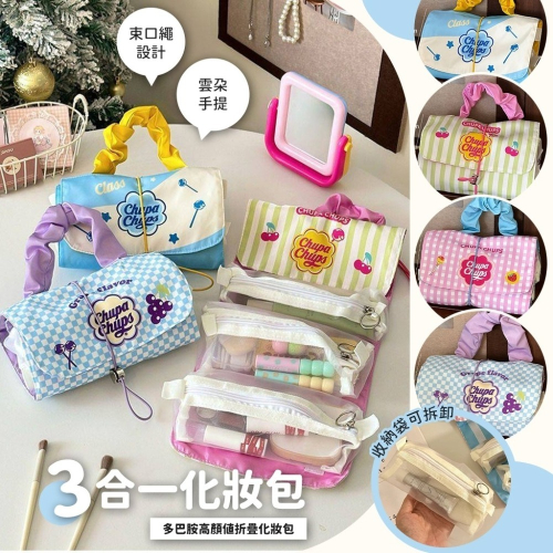 現貨-可愛 三合一折疊化妝包 ~內有三區~大容量 出差旅行洗漱包 可愛收納袋