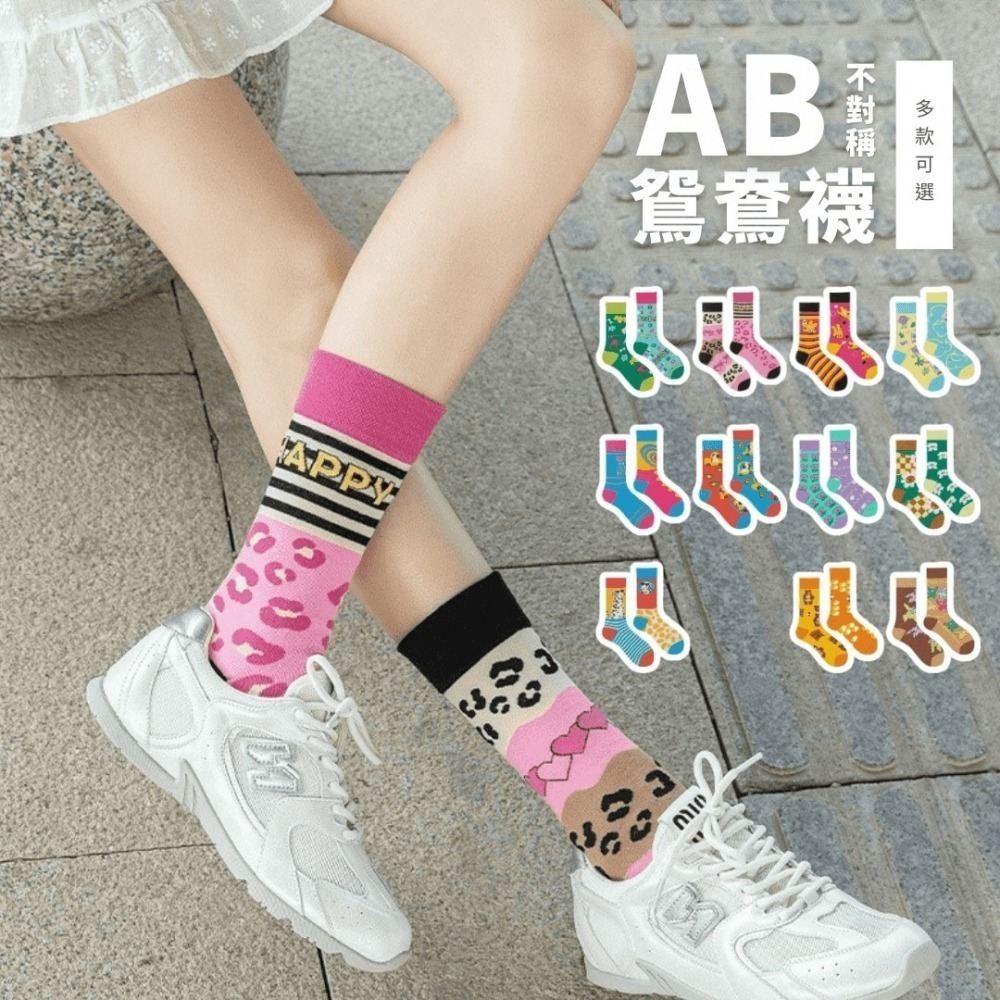 ✈️現貨-//穿搭選品//不對稱AB鴛鴦襪 中筒襪