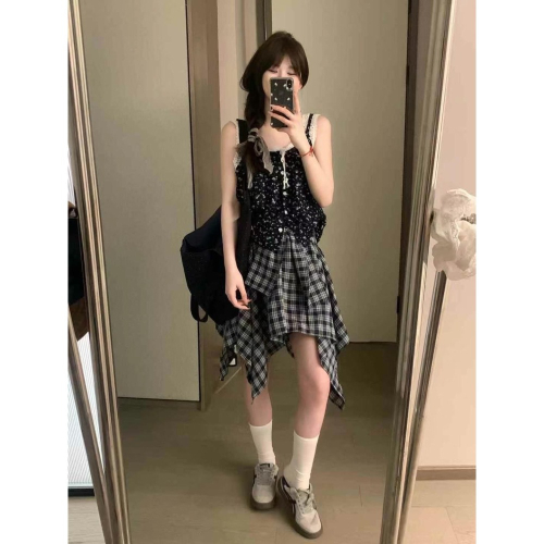 ✈️黑S現貨1-//WGWE家//綁帶造型格紋褲裙~6.1