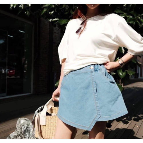 ✈️現貨-韓國🇰🇷// 側扣牛仔褲裙