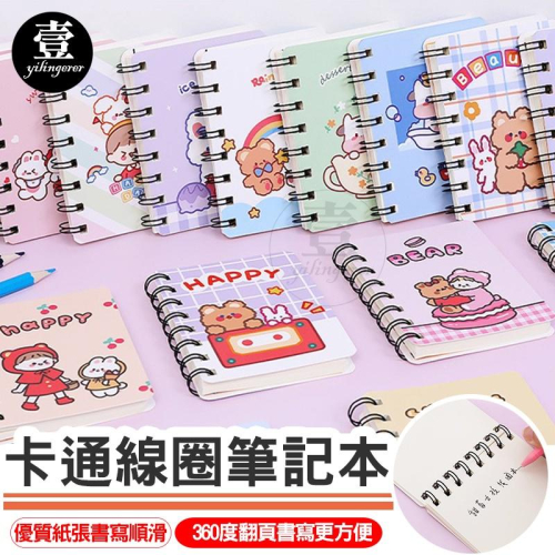 卡通線圈筆記本【台灣現貨+電子發票】側翻白底 空白記事本 活頁本 口袋筆記本 線圈本 隨身筆記本 小本子 單字本 文具