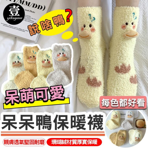 呆呆鴨保暖襪【台灣現貨+電子發票】珊瑚絨地板襪 月子襪 中筒襪 保暖襪 秋冬必備 襪子 珊瑚絨襪 毛襪 睡眠襪 室內襪