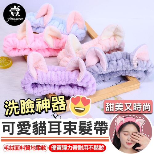 可愛貓耳束髮帶 洗臉髮帶 貓耳髮帶 洗臉神器 毛絨髮飾 洗臉束髮帶 化妝髮帶 彈性髮帶 貓耳髮帶 敷面膜工具 貓耳朵髮帶