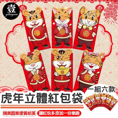 紅包 虎年紅包袋 一組六款【台灣現貨+電子發票】2022年新款虎年紅包袋 立體 壓歲錢 立體紅包袋 可放千元鈔票