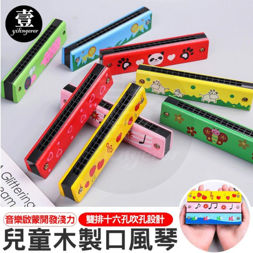 兒童木製彩繪卡通動物口琴【壹零二二】台灣現貨秒發&發票【E0220643】創意啟蒙玩具 口風琴雙排十六孔 早教玩具
