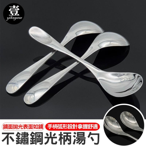 光柄湯勺 不鏽鋼湯匙 台灣現貨 湯匙 不銹鋼餐具 一體成形 勺子 拋光鏡面