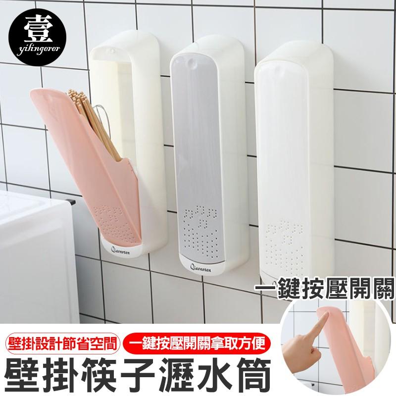 [台灣現貨秒發&發票]壁掛式筷子瀝水筒 瀝水筷子架【壹零二二】按壓彈蓋 餐具架 筷子架 瀝水 收納架【E0220490】