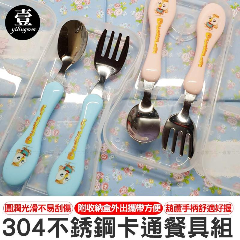 [台灣現貨秒發]304不銹鋼卡通餐具組 湯匙【壹零二二】 勺子 叉子 兒童叉勺 學習餐具 附收納盒【E0220359】