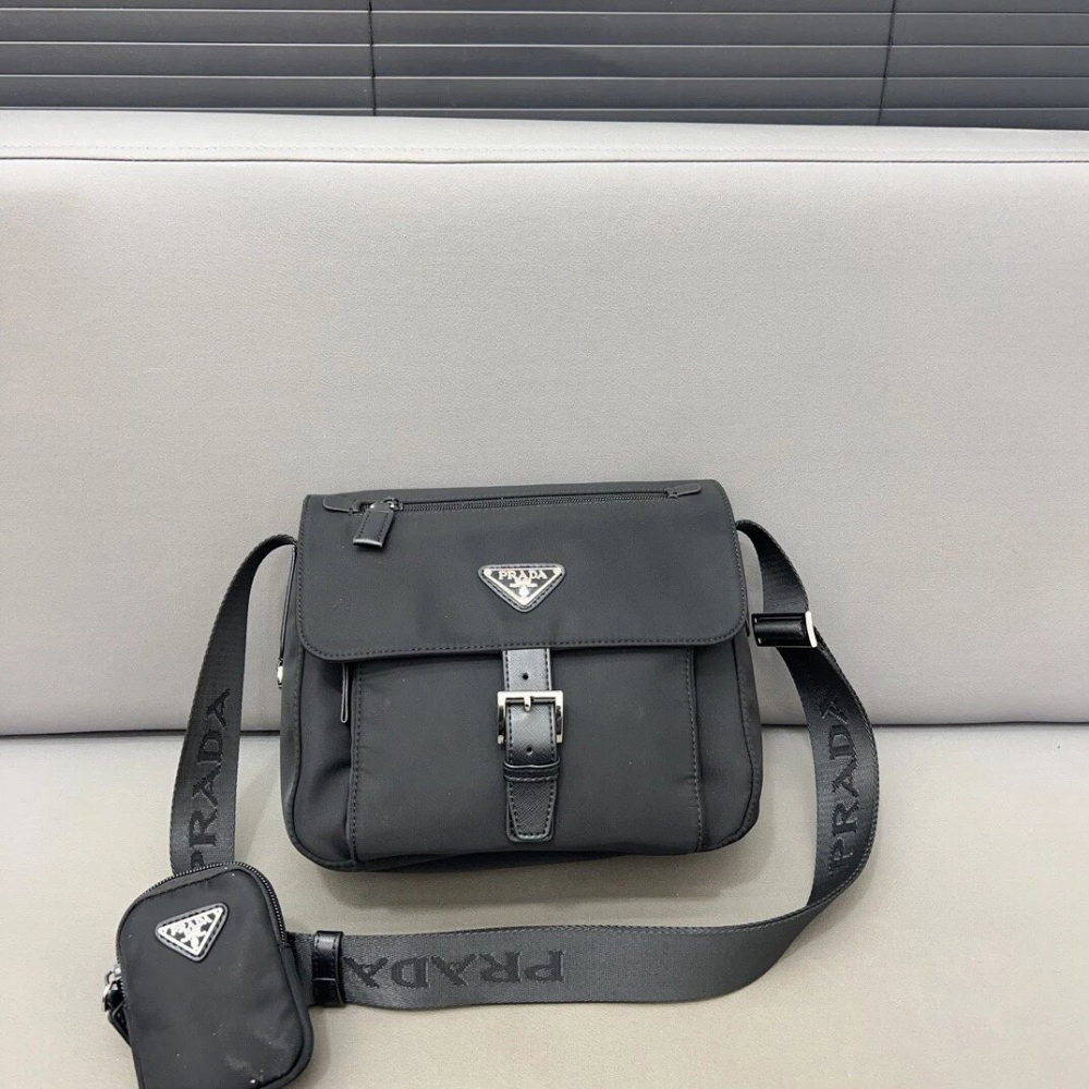 PRADA普拉達包包 尼龍布三合一三角標斜背包 翻蓋包 郵差包 男生包包 通勤百搭休閒包 子母包 大容量小方包