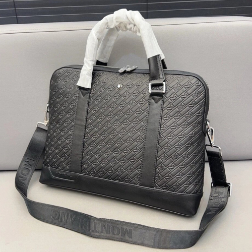 Montblanc萬寶龍公事包 M_GRAM系列牛皮壓花男生公事包 公文包 大容量筆電背包 電腦包 商務出差背包 黑色牛