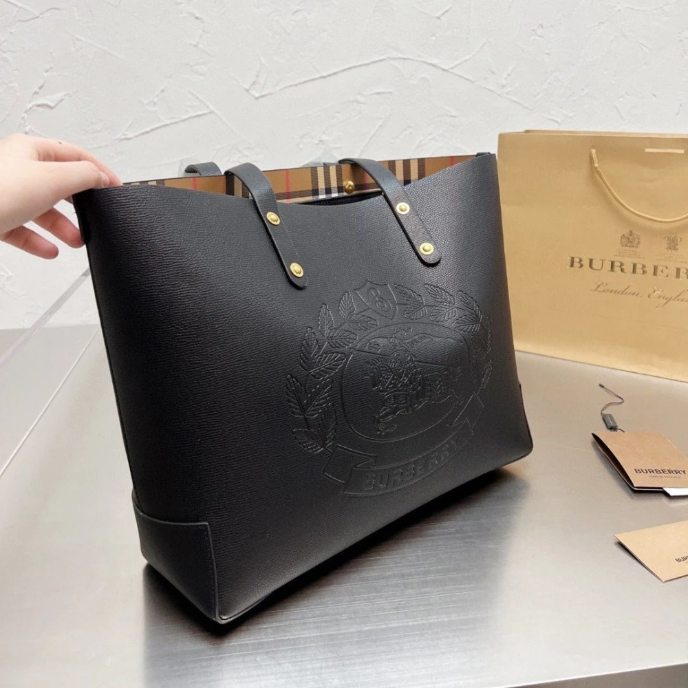 Burberry戰馬包包 巴寶莉托特包 女生包包 黑色白色皮質背包 真皮女包 大容量托特包 大方包 購物袋 單肩包 側背