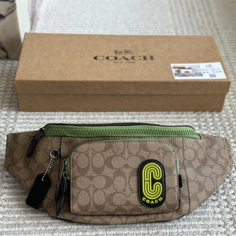 Coach蔻馳胸包 經典老花拼色腰包 男生胸包 男女通用情侶背包 TRACK腰包 單肩包 側背包 斜背包 休閒包 運動旅