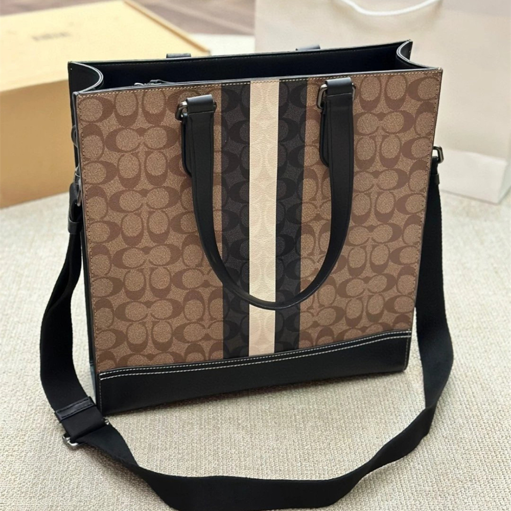 Coach蔻馳包包 graham男士豎款托特包 VARSITY條紋手提袋 商務出差公事包 電腦包 公文包 通勤百搭休閒包
