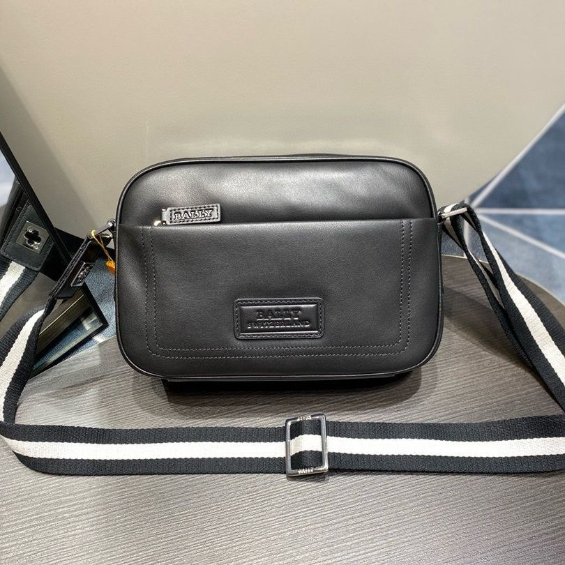 Bally巴利包包 男生斜背包 男士相機包 真皮包包 黑色牛皮男包 時尚通勤包 運動包 多隔層小方包 小背包男 旅行包