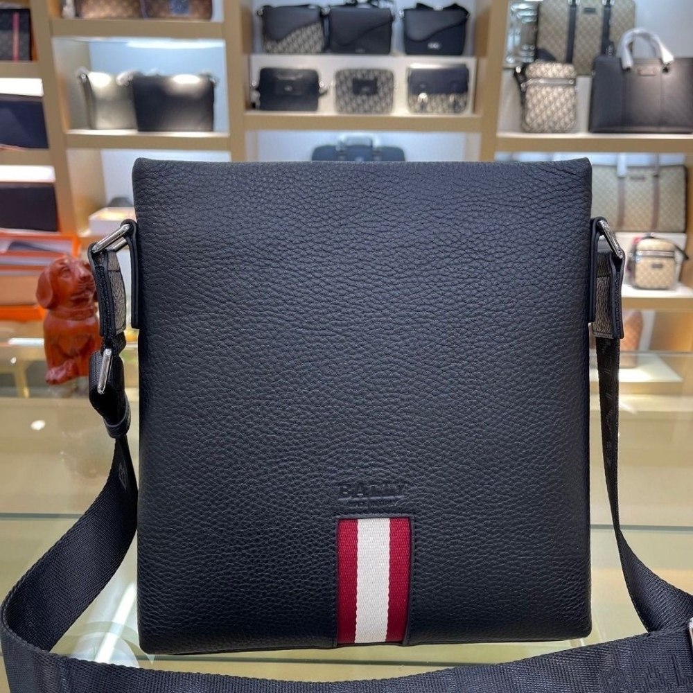 Bally巴利包包 男士斜背包 黑色荔枝紋牛皮背包 高檔通勤男包 皮質包包男 商務旅行包 公事包 單肩包 側背包