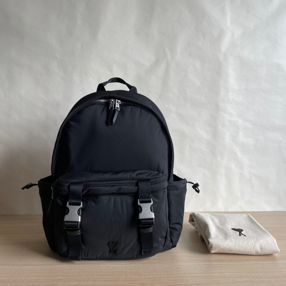 Ami雙肩包 男女通用雙肩後背包 防潑水黑色尼龍背包 簡約大方休閒包 運動包 旅行包 大容量手提袋 側背包 學生書包
