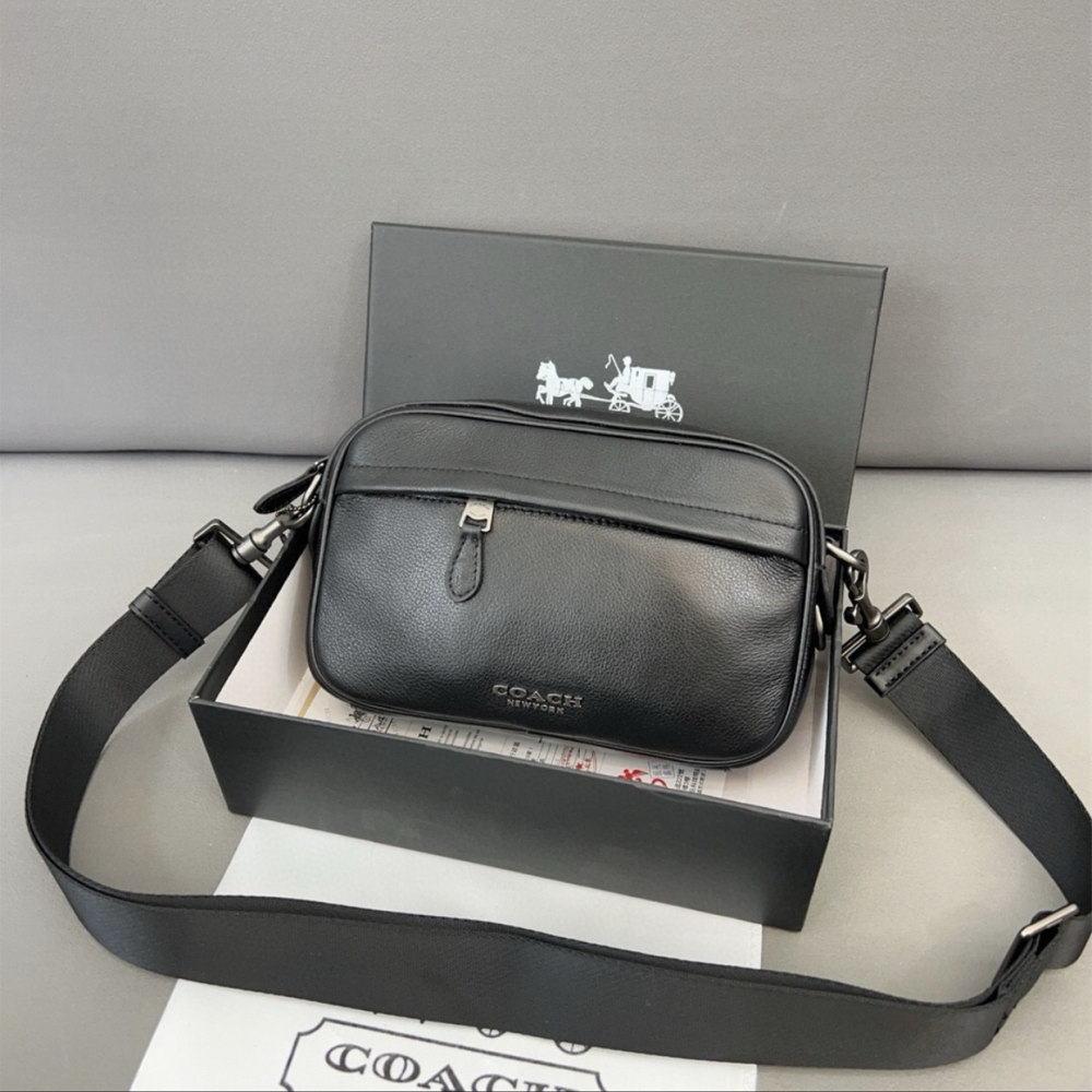 蔻馳相機包 coach包包 男生包包 男士斜背包 小背包 休閒運動包 旅行包 通勤百搭男包 手機袋 多隔層單肩包 黑色真