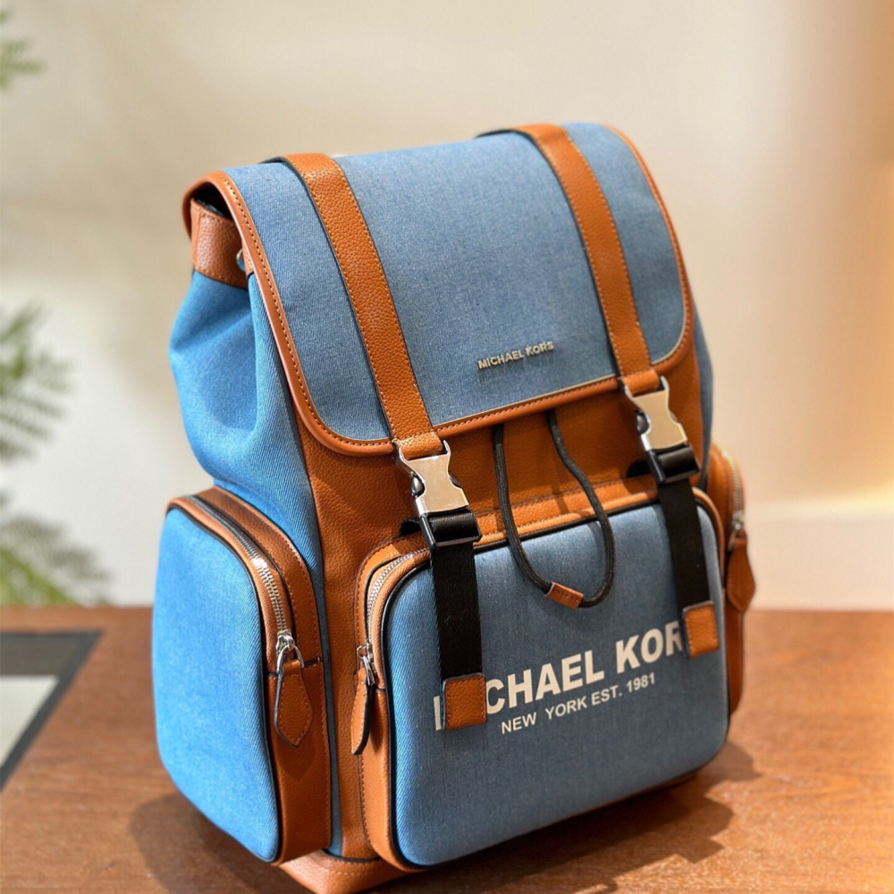 Michael Kors雙肩包 Cooper男生雙肩後背包 大容量旅行包 翻蓋抽繩包 多隔層筆電背包 真皮包包 時尚通勤