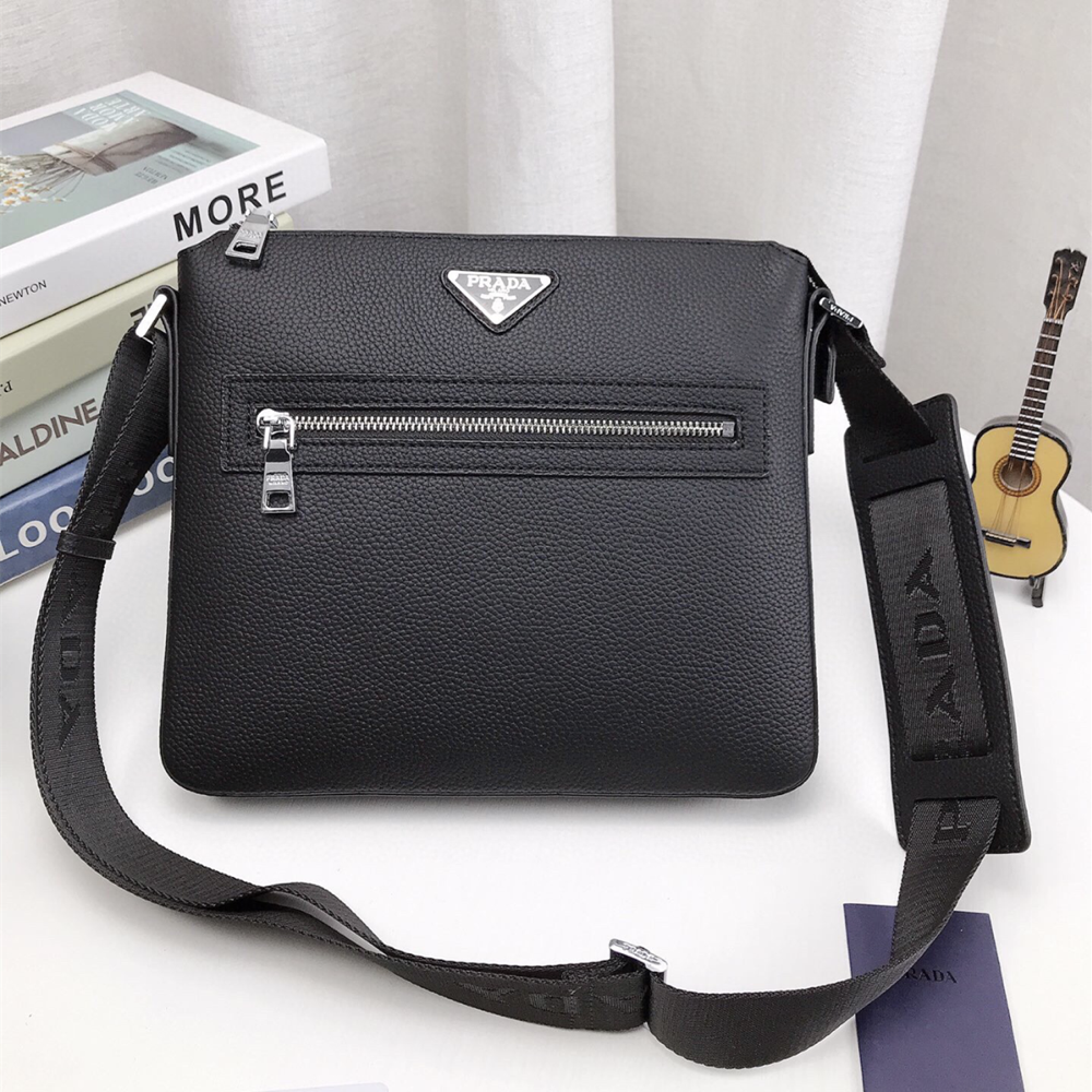 普拉達prada包包 素面皮質包包 男生斜背包 黑色牛皮背包 商務通勤包 休閒包 旅行包 郵差包 簡約百搭男包 公事包