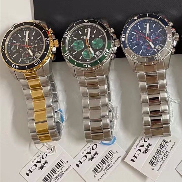 代購Coach蔻馳手錶男生 KENT系列男士石英錶 三眼計時日曆鋼鏈錶 大直徑時尚男錶 商務休閒男款腕錶14602557
