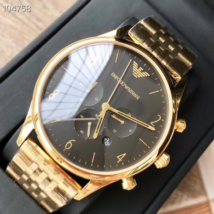 Armani手錶 金色黑面鋼鏈錶 三眼計時日曆多功能男士腕錶 時尚潮流男錶 大直徑防水金錶男 亞曼尼石英男錶AR1893