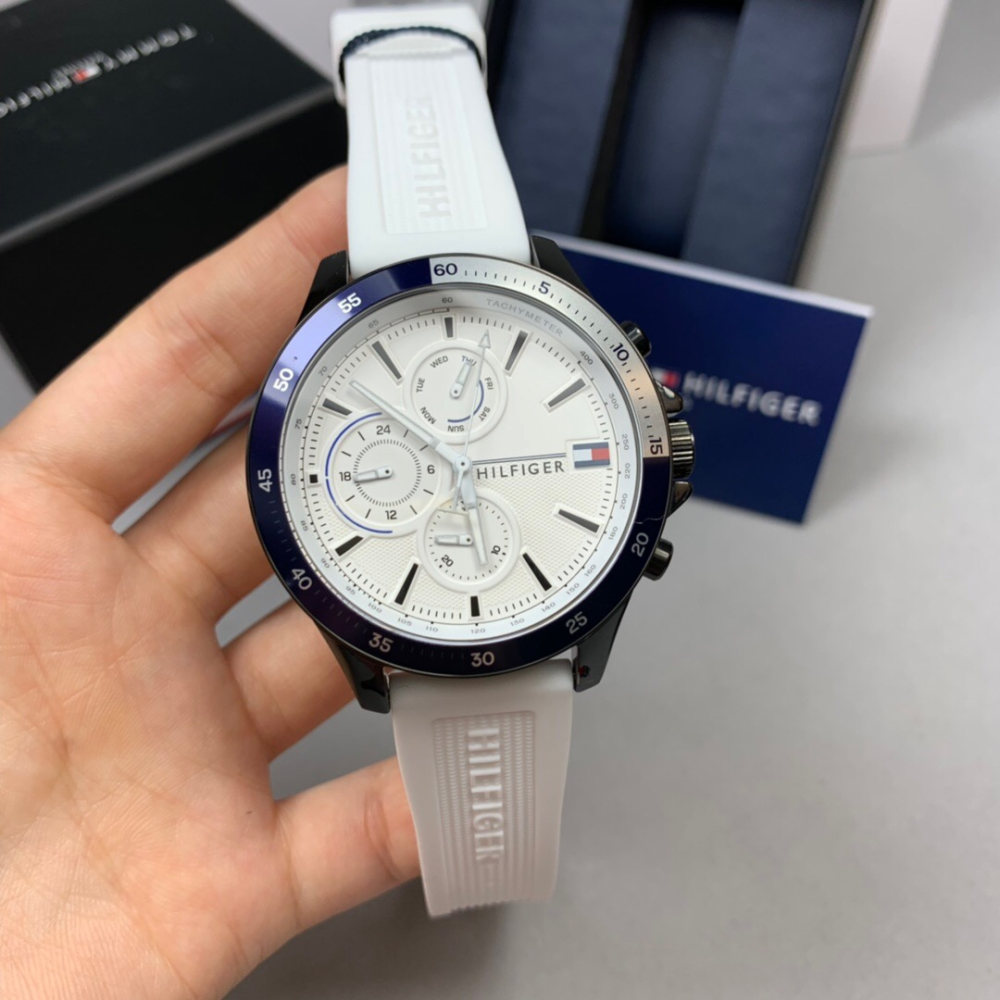 Tommy Hilfiger手錶 湯米手錶男生 白色橡膠錶帶休閒運動腕錶 時尚潮流男錶 防水石英錶 學生手錶男17917