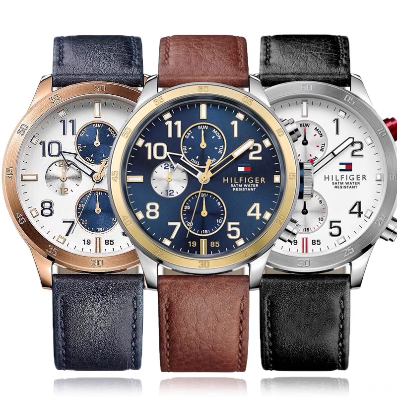 TOMMY HILFIGER手錶 湯米手錶男 夜光小三針計時多功能石英錶 商務休閒皮帶錶 歐美商務通勤男錶1791137