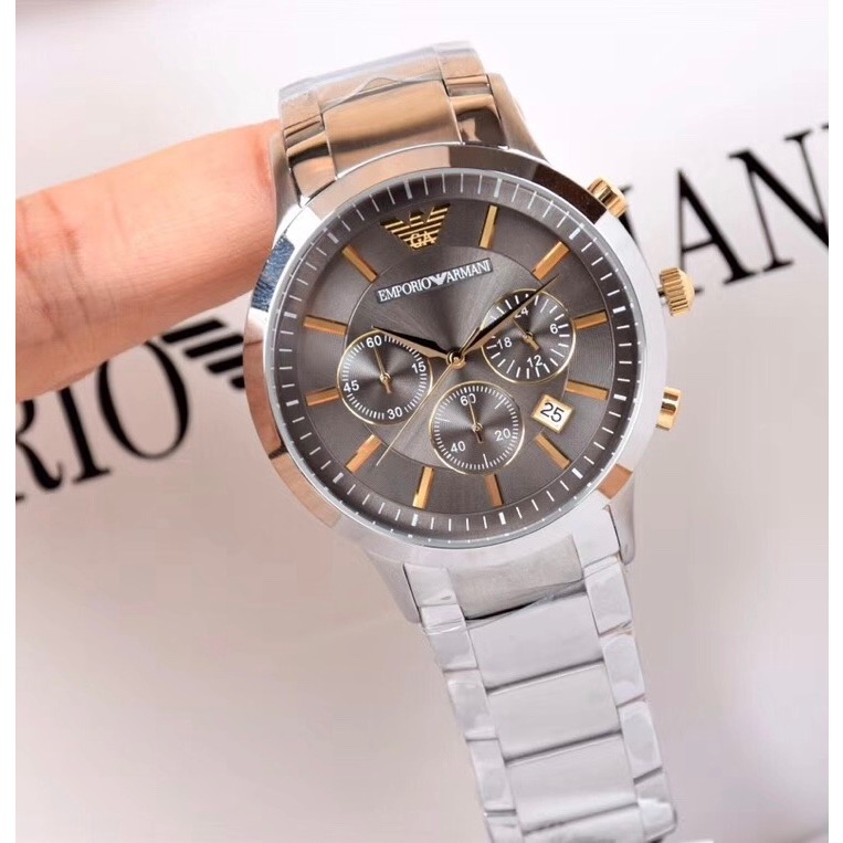 ARMANI阿曼尼手錶 男生手錶 計時防水手錶 玫瑰金鐵灰色石英男錶 不鏽鋼鏈三眼計商務休閒男士腕錶AR11047