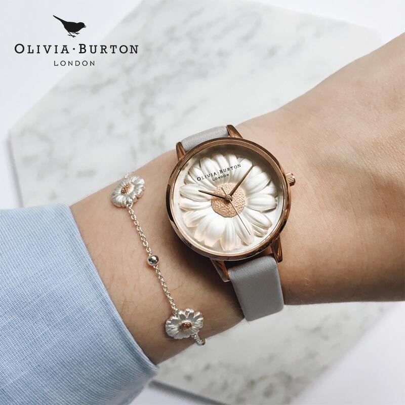 Olivia Burton手錶 女生腕錶 英國品牌OB手錶 小雏菊圓形皮帶石英錶 花朵設計個色時尚潮流女錶 精品錶