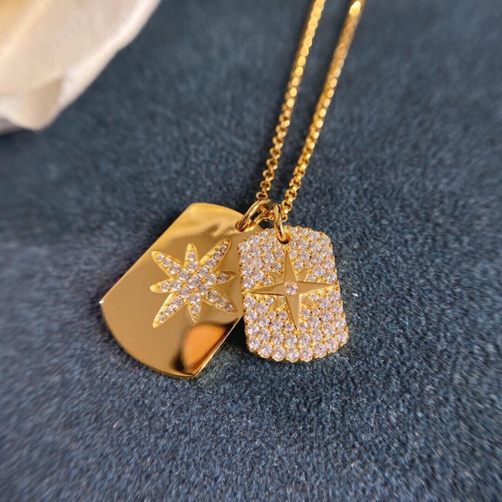 款式: 流星金色鑲晶鑽雙牌項鏈