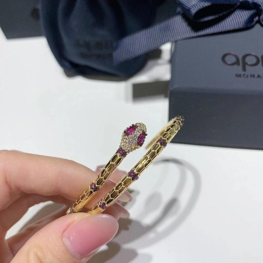 APM MONACO手鐲 APM蛇靈開口手鐲 S925純銀手鐲 女生手環 金色鑲晶鑽蛇手環 手鏈女 高級感時尚手鐲