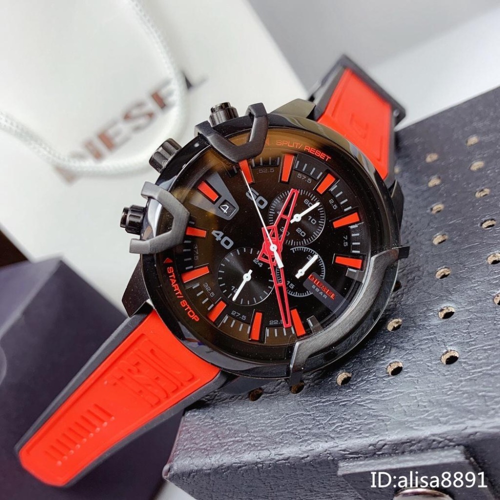 DIESEL迪賽手錶男 休閒運動手錶男 休閒運動男生腕錶 歐美時尚潮流 日曆計時男錶 DZ4530 紅色橡膠錶帶石英錶