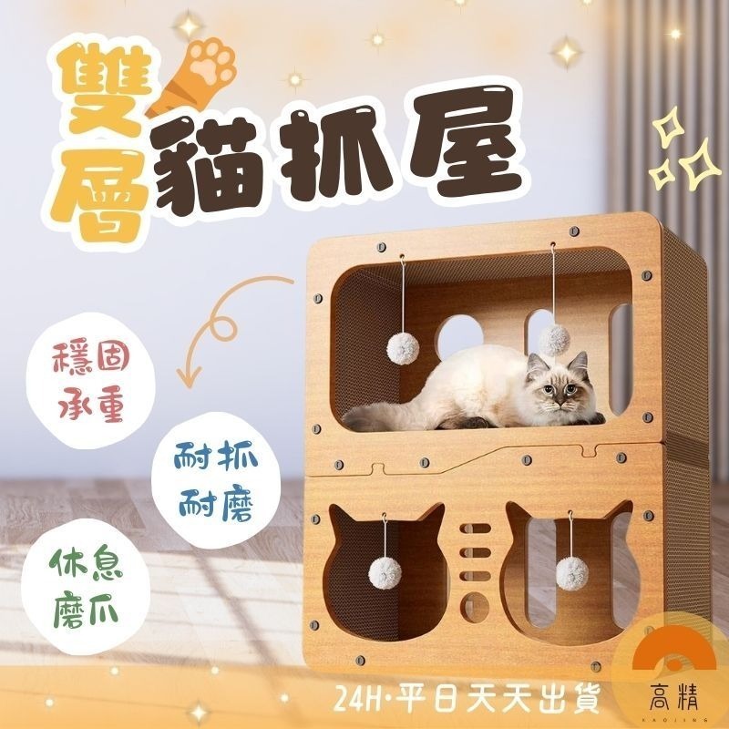 雙層豪華貓抓屋 >> 寬25 長45 高51 cm ( 附毛絨逗貓球 / 鈴鐺球 )