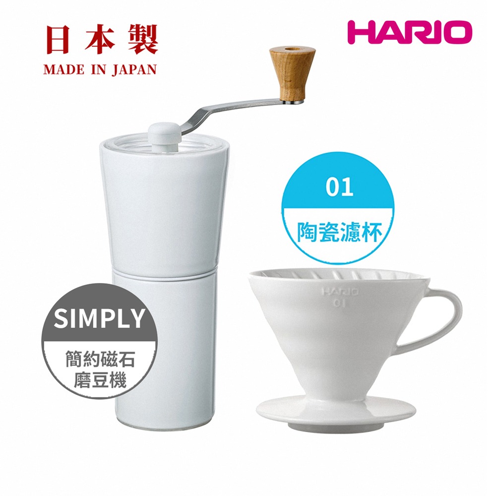 【HARIO官方】HARIO 純白系列 V60 簡約磁石手搖磨豆機-白色 + V60白色01/02磁石濾杯