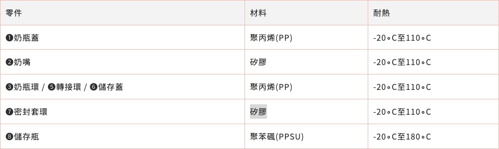 如:擠乳器壓頭、儲存蓋與轉接環等