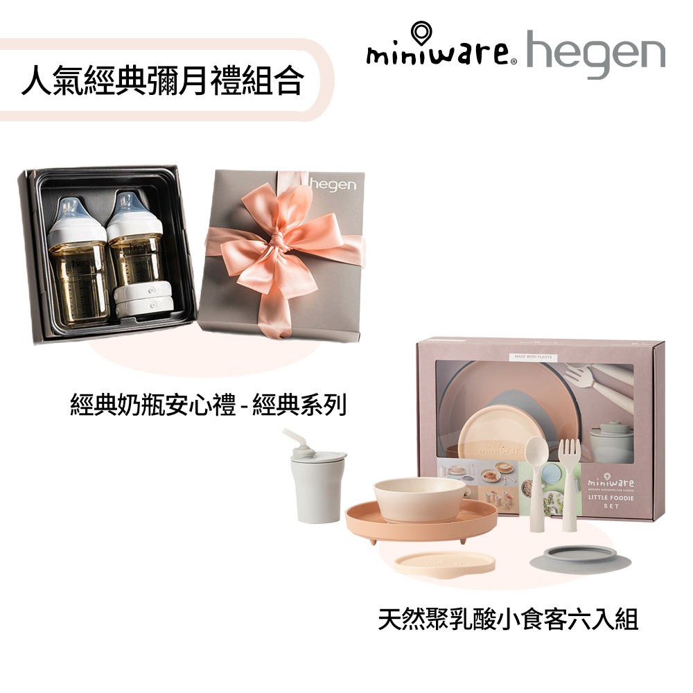 品名:【hegen】 人氣經典彌月禮組合-經典奶瓶安心禮 - 經典系列 + miniware 天然聚乳酸小食客六入組 產品尺寸:小食客-34.5x8.5x25cm // 安心禮-210x200x100mm 產品重量:小食客-約920g // 安心禮-約556g 包裝尺寸:小食客-34.5x8.5x25cm // 安心禮-230x220x110 mm 包裝重量:小食客-約920g // 安心禮-約820g 材質:hegen-奶瓶蓋-聚丙烯(PP) /奶嘴-矽膠/奶瓶環、轉接環、儲存蓋-聚丙烯(PP) /密封套環-矽膠/儲存瓶-聚苯碸(PPSU) // miniware-天然聚乳酸(100%植物萃取物)、 食品級矽膠 產地:hegen-馬來西亞 // miniware-台灣 包裝內容物:寬口奶瓶 240ml (象牙白)*1、奶嘴|中速*1、寬口奶瓶 150ml (象牙白)*1、奶嘴|慢速*1 |