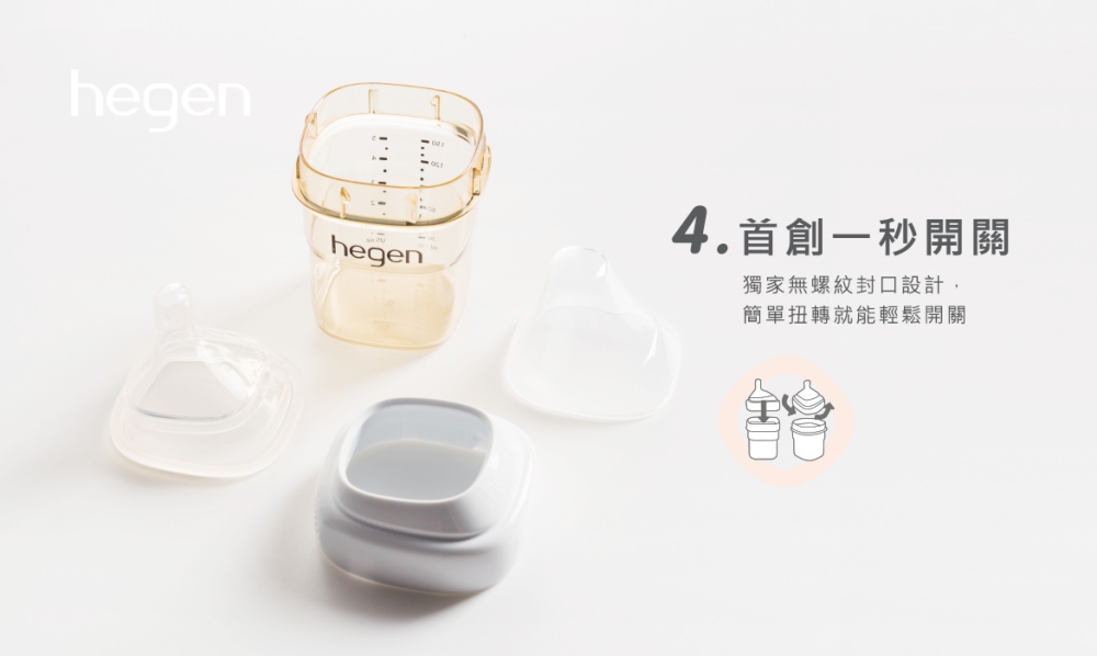 hegen打破傳統思維,唯一以母親角度來設計奶瓶,創造出世界第一款多功能成長的奶瓶,只要隨心變化上蓋,就可以變成~