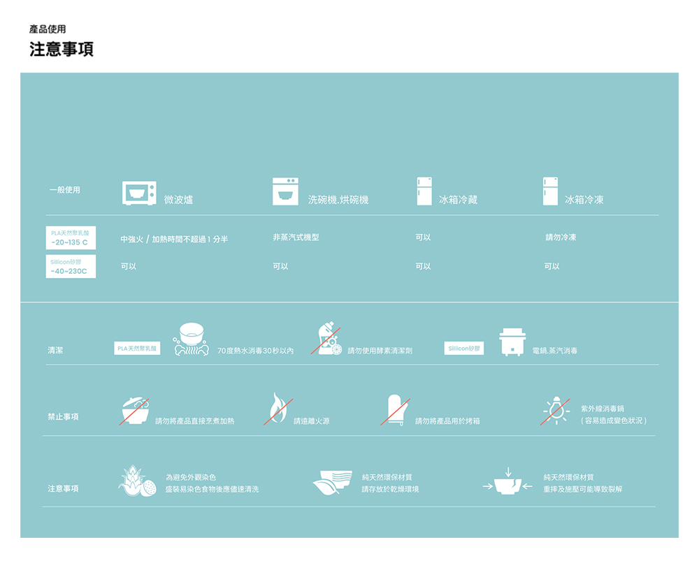 * 如需加熱至較高溫燙口的食物、建議使用其他容器加熱後·再放入Miniwae碗盤中。