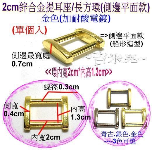 ~吉米兒~金色系列-金色2cm鋅合金提耳座/長方環(側邊平面款)替代口型環使用