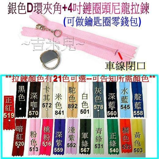 ~吉米兒~五金配材-銀色D環夾角+4吋鏈圈頭尼龍拉鍊(可做鑰匙圈零錢包)