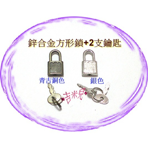 商品:鋅合金方形鎖+2支鑰匙(日記鎖)----售價:1組=20元 (含方形鎖*1個+2支鑰匙) ***顏色:青古銅色.銀色---2色可選*** 扣合後方形鎖尺寸:寬1.9cm*高3.3cm 方形鎖材質:鋅合金 鑰匙材質:鐵電鍍 <<鑰匙都是互通,裝飾創意設計>>